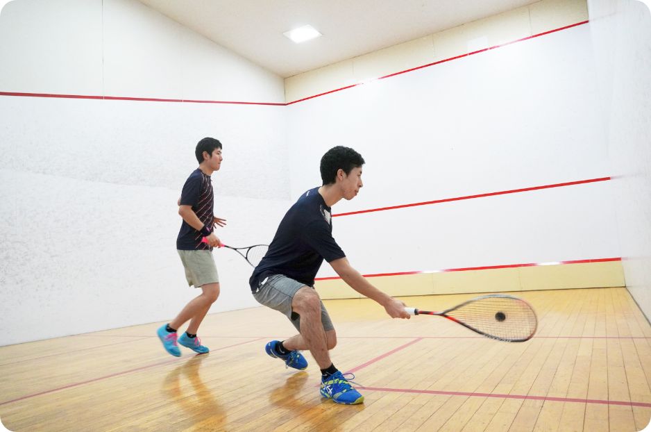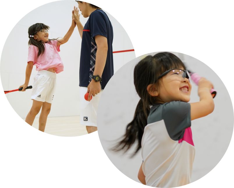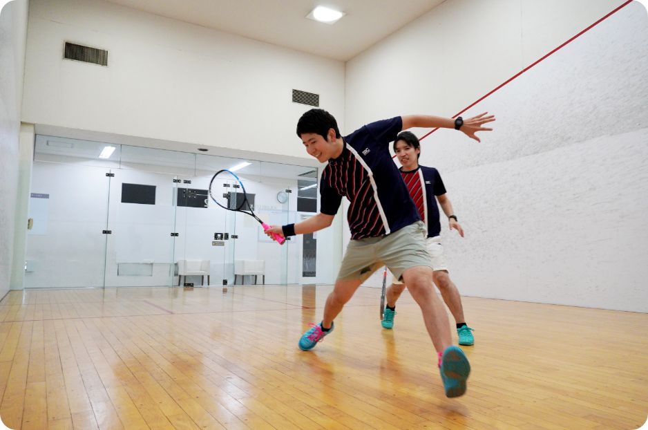 頭脳スポーツ「スカッシュ 」で、運動しながら考える力も育みます。